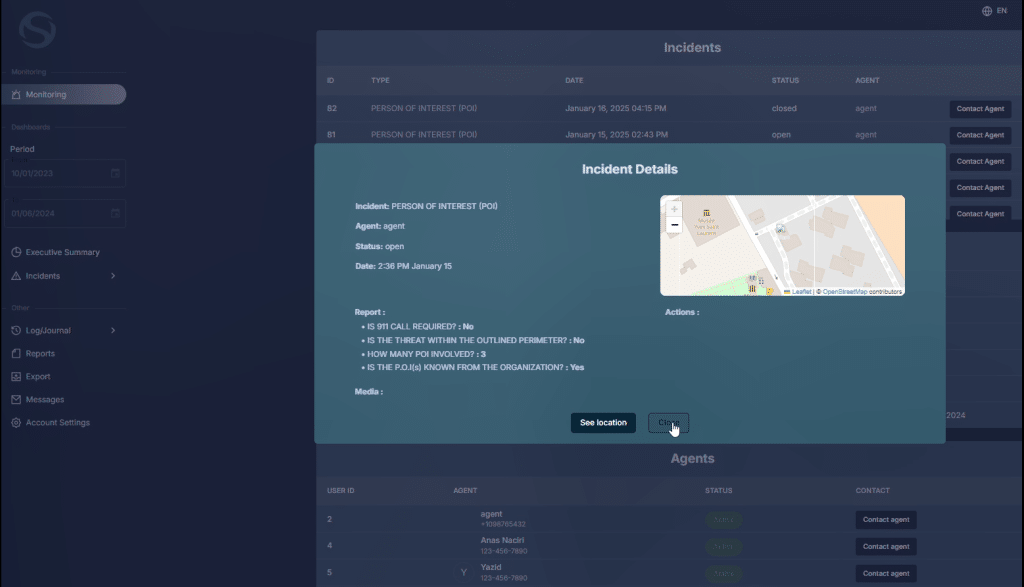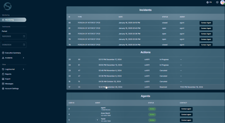 • Centre de coordination live : suivi en temps réel des ressources, rôles et équipements.